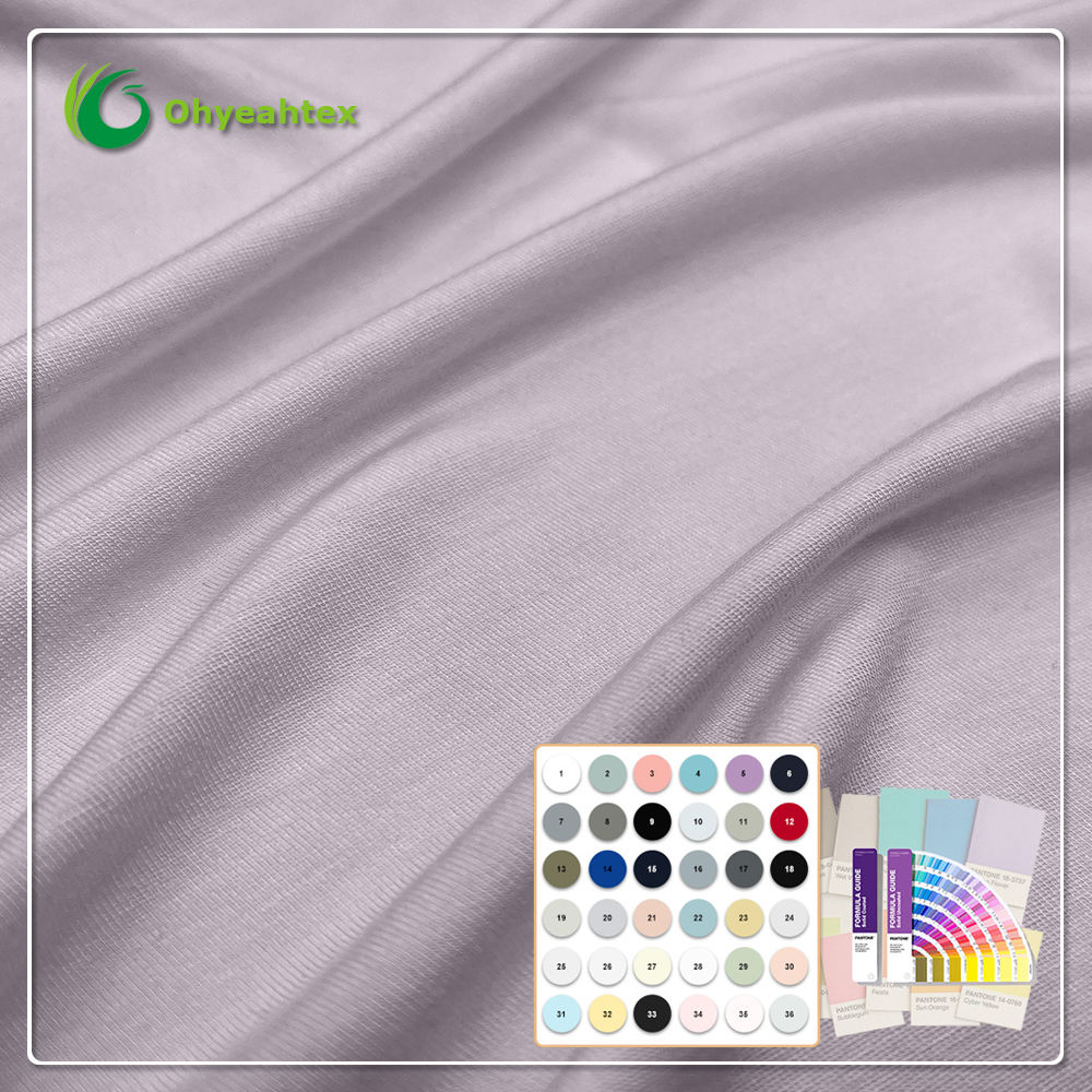 This 100% bamboo fiber jersey fabric combines natural anti-bacterial properties with exceptional moisture-absorption, ensuring lasting freshness and comfort. Its four-way stretch allows unrestricted movement, while the plain-dyed finish offers versatile styling. Ideal for daily wear and active lifestyles, it offers breathability, durability, and skin-friendly comfort while supporting sustainable fashion