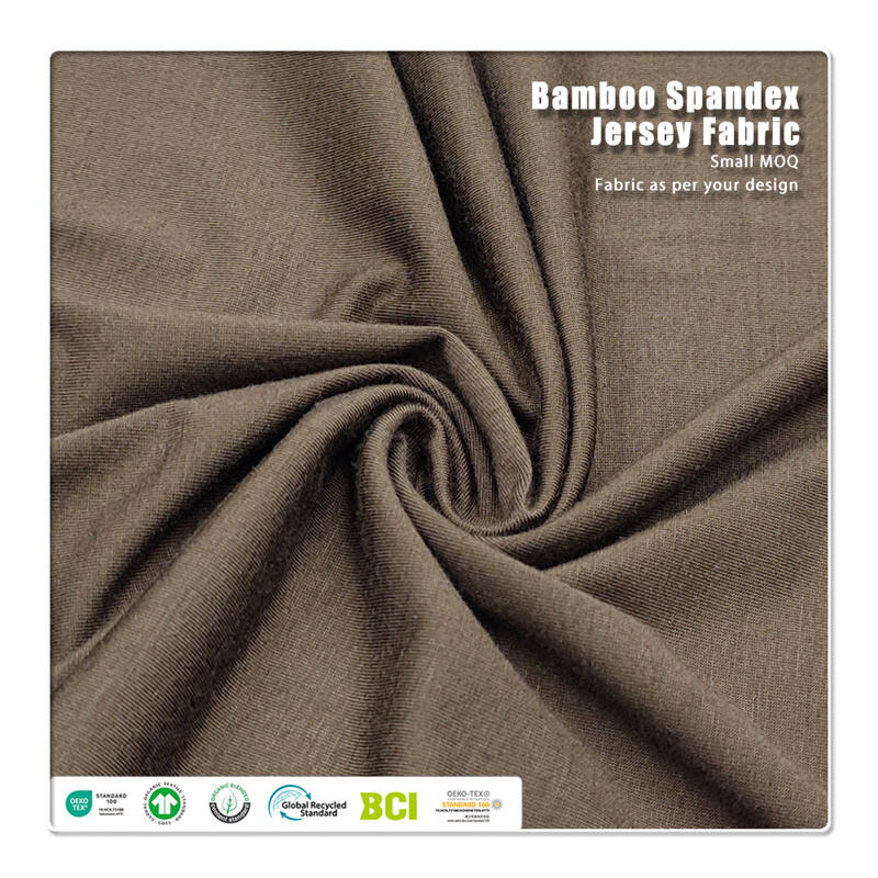 Denne 220 gsm enkeltjersey indeholder 95 % Tianzhu-bambusfiber spunet med kompakt-siro-teknologi for ekstraordinær blødhed og holdbarhed, blandet med 5 % spandex for fleksibel komfort. Stoffet gennemgår højaktiv farvning for at opnå farvehærdighed klasse 4 og krympning under 5 %, hvilket bevarer levende farver og form efter gentagne vask. OEKO-TEX®-certificering sikrer sikkerhed for følsom hud, ideel til pigesenge, T-shirts og børnetøj. Med en åndbarhed, der er 3,5 gange højere end bomuld, og naturlige fugtoptagende egenskaber, giver det et køligt, blødt følelse ved døgnet rundt. Den tætte strikkede struktur forbedrer modstandsdygtighed mod pilling og understøtter langvarig brug i økologisk bevidste tøjlinjer