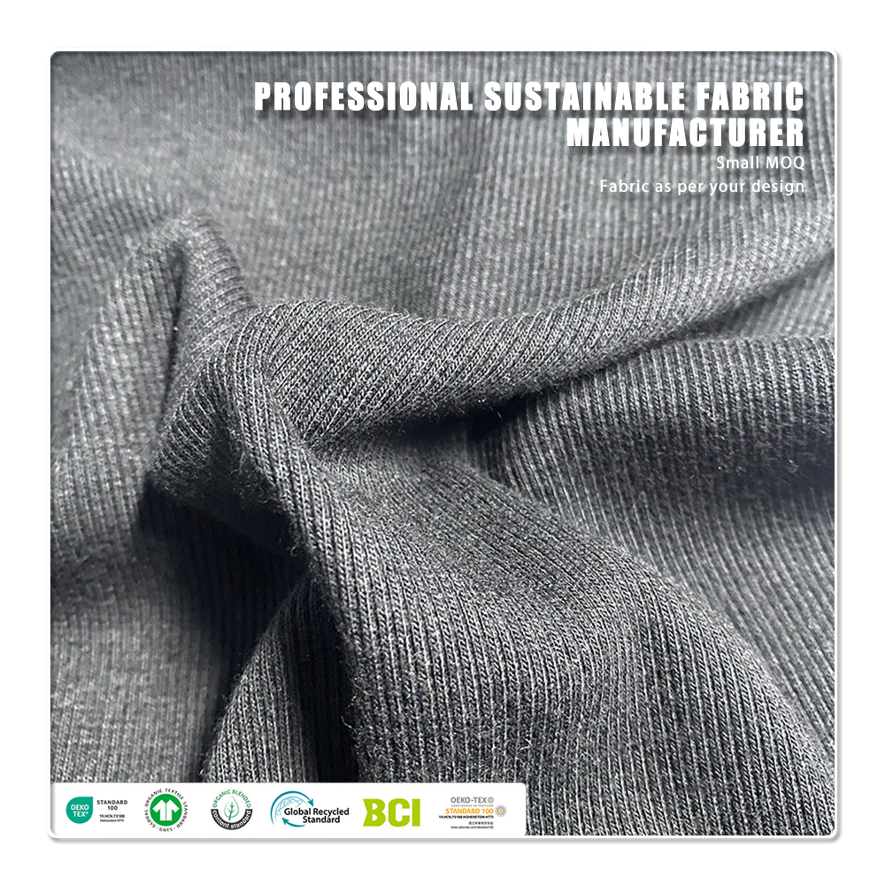 This heavyweight rib knit fabric is expertly engineered for premium activewear and girls' hoodies. It masterfully blends fashion-forward bamboo, certified organic cotton, and flexible spandex to achieve an ideal balance of structure, comfort, and performance.