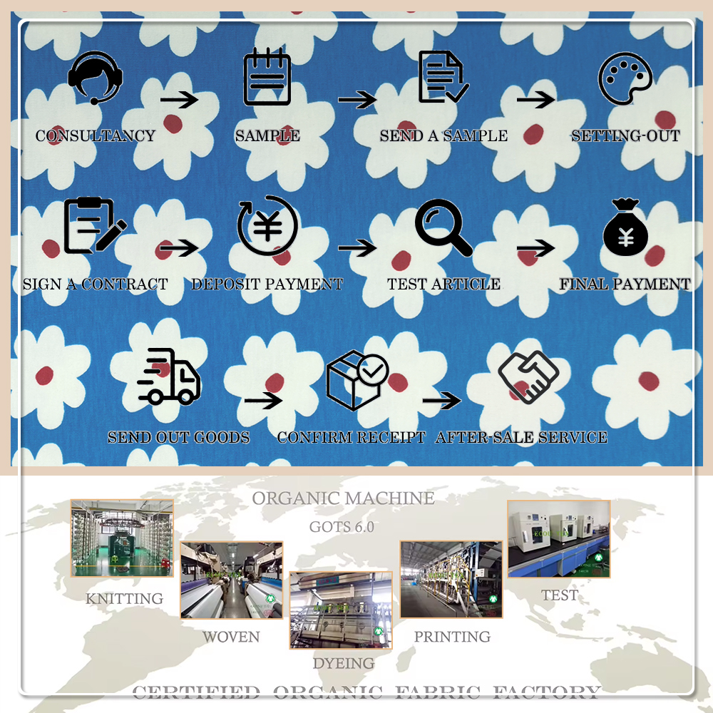 95% Bawełna organiczna 5% Spandex Drukowana tkanina |