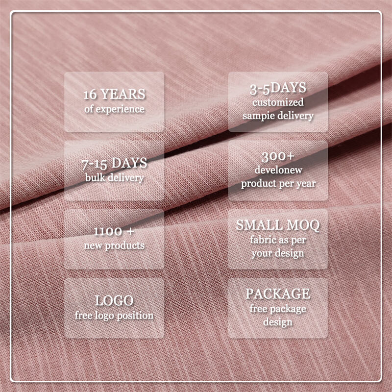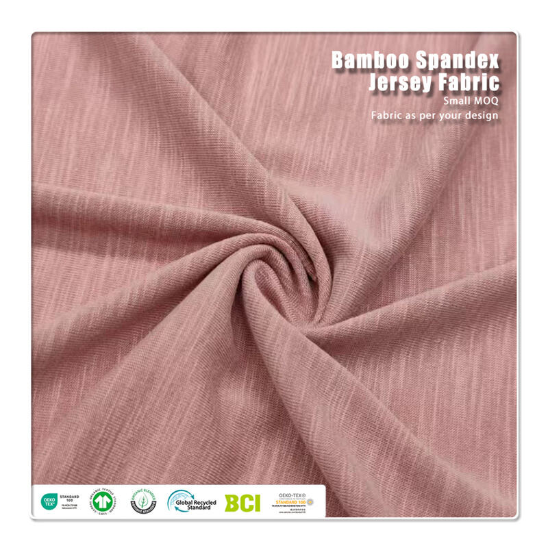 Denna slub jersey kombinerar 73 % Lenzing Modal från bokträd för silkesmjuk känsla och fukttransport med 27 % polyester för ökad hållbarhet och formstabilitet. Genom användning av högkvalitativ reaktiv färgning uppnås ljushetsgrad 4 och krympning under 5 % genom exakt värmebehandling. OEKO-TEX®-certifierad för hudsäkerhet, garanterar den frånvaro av skadliga kemikalier (t.ex. formaldehyd ≤16 mg/kg). Slubstrukturen ger en diskret, naturlig estetik, medan blandningen erbjuder andningsförmåga och pillningsmotstånd. Idealisk för vardagliga t-shirts, balanserar den ekologiskt medveten komfort med långvarig prestanda
