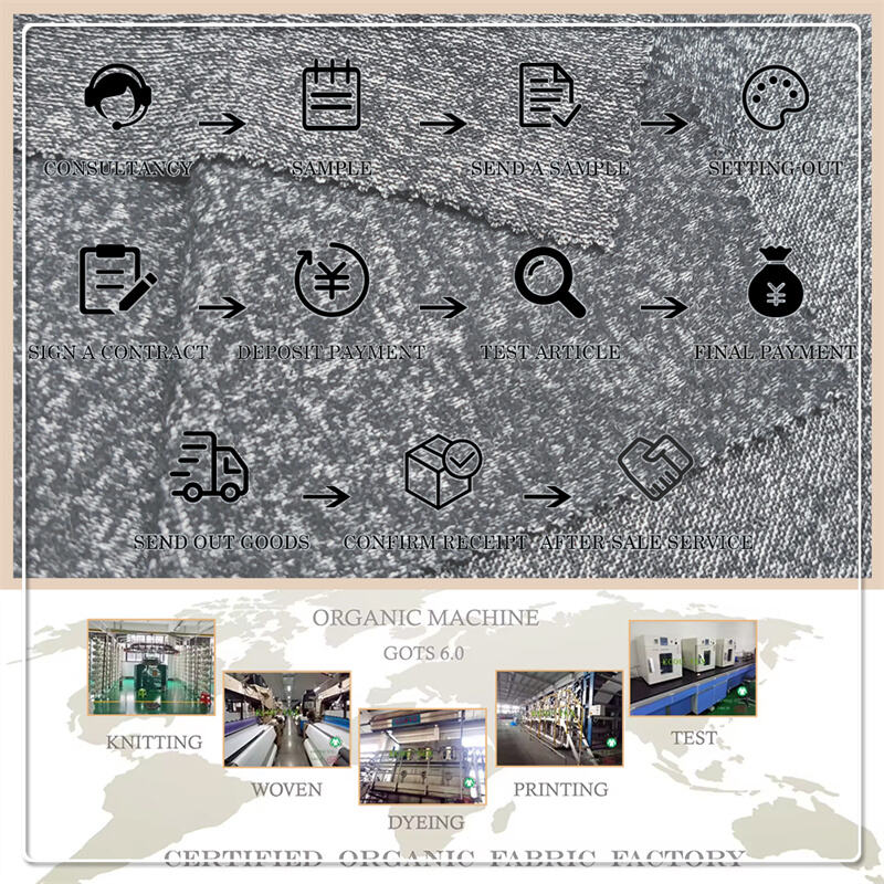 200 gsm 67 % Hacci Rayon 28 % återvunnen polyester 5 % spandex trikå |