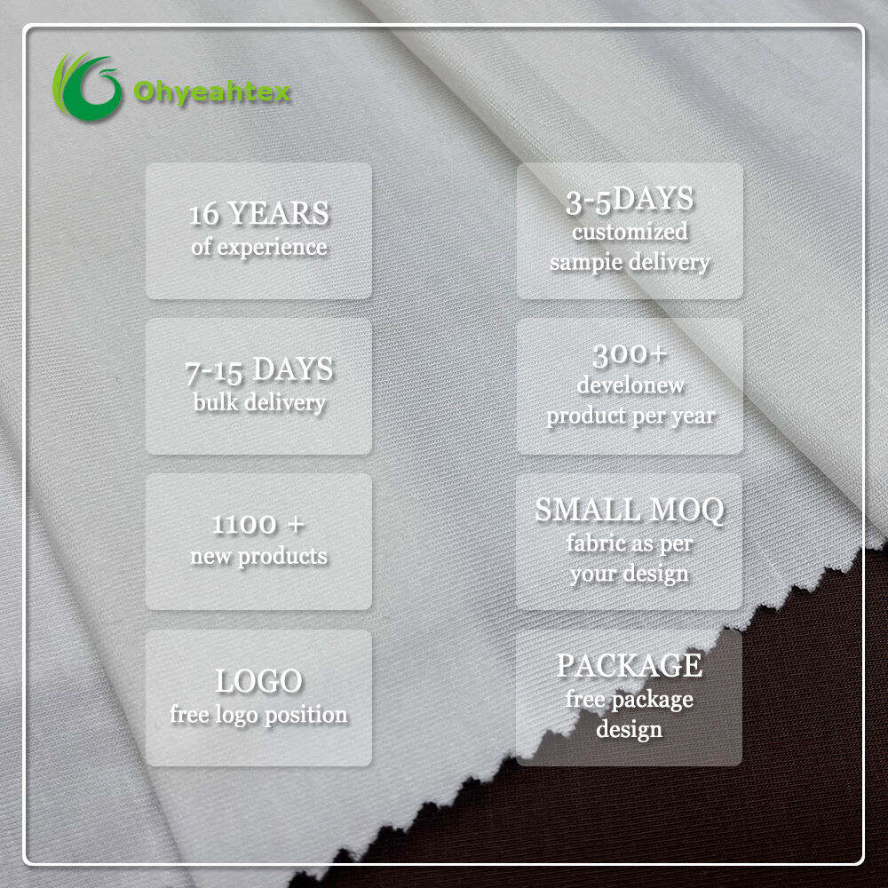 Detta premium Enkel jerseystickad väv kombinerar 68% bambu lyocell , 22% kitosan och 10% spandex för att erbjuda oöverträffad mjukhet, andningsförmåga och elasticitet , vilket gör den idealisk för kläder, sportkläder och vardagsklädsel. Den Bambu Lyocell kärnan säkerställer superiör fukttransport, temperaturreglering och naturliga antibakteriella egenskaper , håller dig torr och utan obehaglig lukt. Komponenten Chitosan förbättrar antibakteriell och anti-odor prestanda , medan den Spandex tillför flexibel elasticitet för en snygg men ändå bekväm passform . Som en miljövänligt material , det är hållbart tillfränkad, biologiskt nedbrytbar och mjuk mot huden , kombinerar hållbarhet, funktion och miljöansvar . Perfekt för designers och köpare som söker högpresterande, säkra och hållbara textilier för mångsidiga och stilrena plagg.